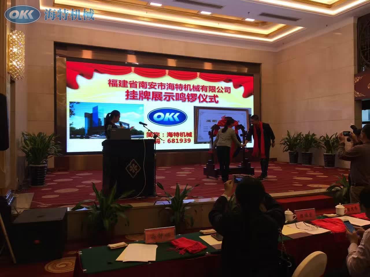 2016年11月22日,泉州首批科技型創(chuàng)客企業(yè)在海峽股權(quán)交易中心集體掛牌,海特機(jī)械董事長(zhǎng)劉海濱上臺(tái)鳴鑼,響徹的鑼聲標(biāo)志著海特機(jī)械正式與資本的對(duì)接,意味著企業(yè)進(jìn)入了更為多元和便捷的融資平臺(tái),供助這一平臺(tái)獲得更多的優(yōu)勢(shì)資源。